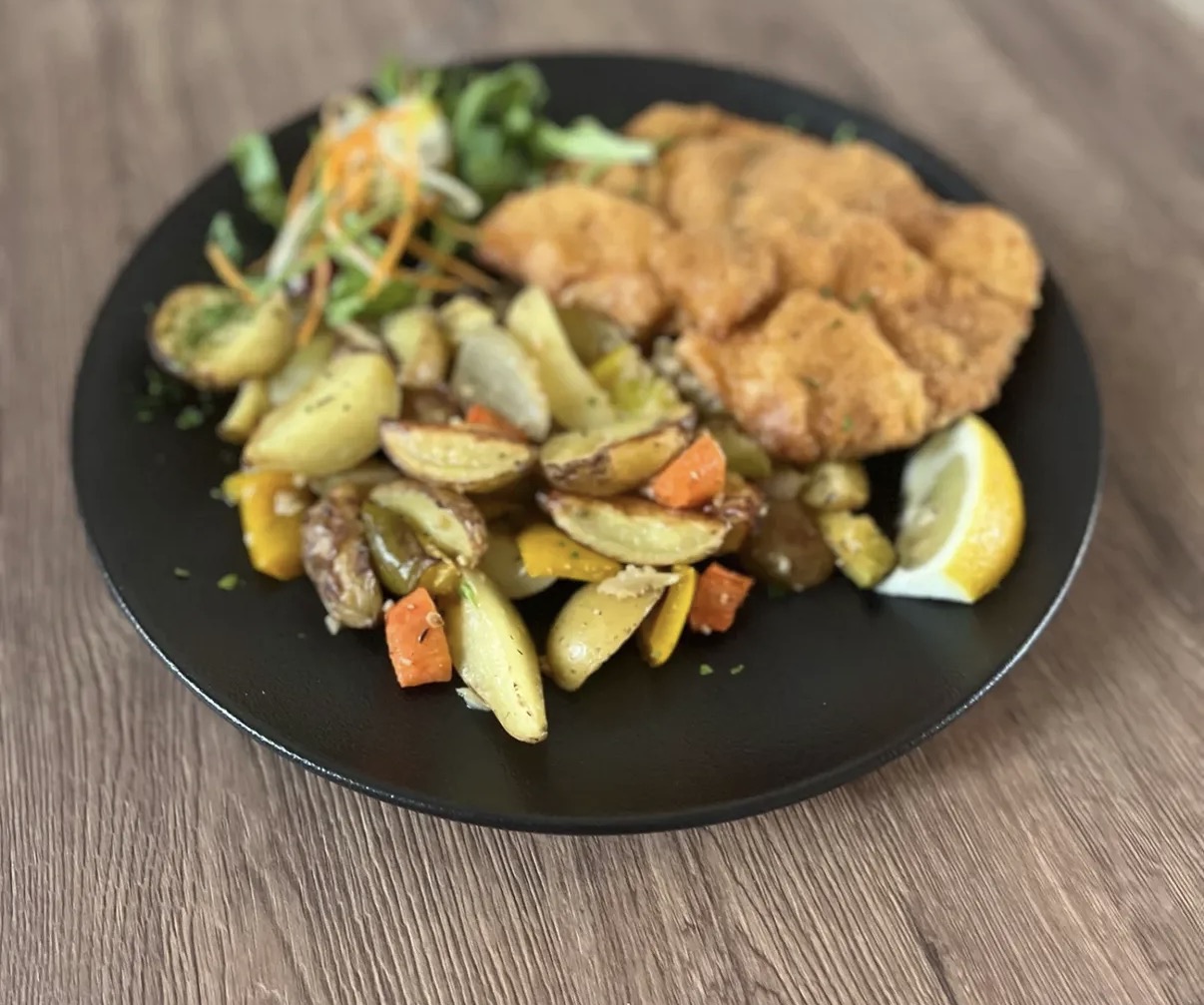 Piščančji dunajski zrezek, pražen krompir 9,20€