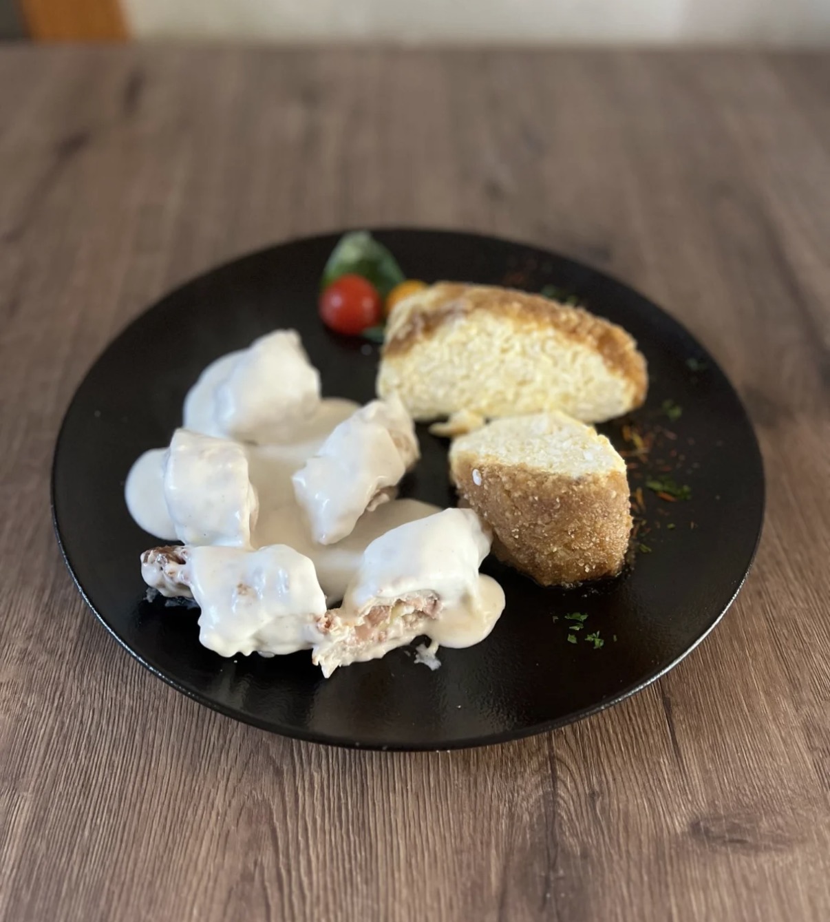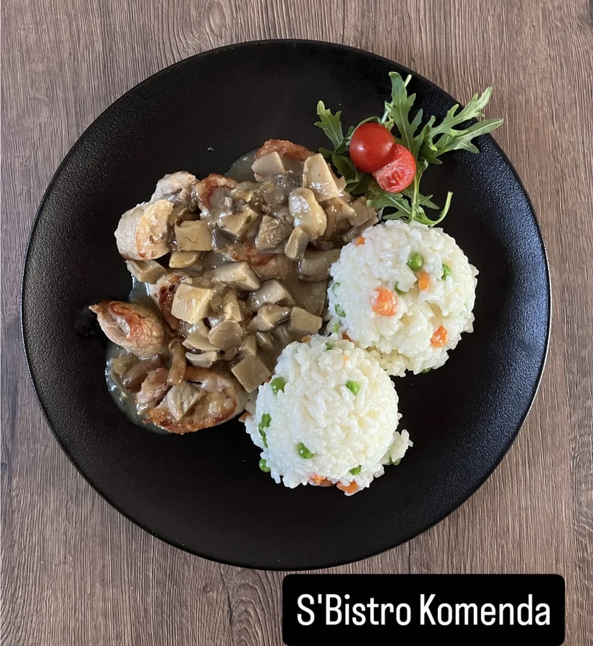 Piščančji zrezek v gobovi omaki, pire krompir 8,90€